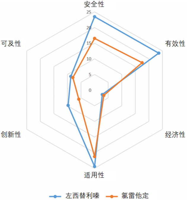 基于上述系統(tǒng),通過文獻梳理和家長問卷調(diào)查收集兩種藥物在實際臨床應用中的數(shù)據(jù),結(jié)合藥品說明書、官方監(jiān)測數(shù)據(jù)及診療指南等多來源信息,由專家團隊按統(tǒng)一標準對藥物各項指標進行評分。最后綜合權(quán)重與專家評分,計算總體評價得分,并通過雷達圖直觀呈現(xiàn)兩藥在各維度的表現(xiàn)。