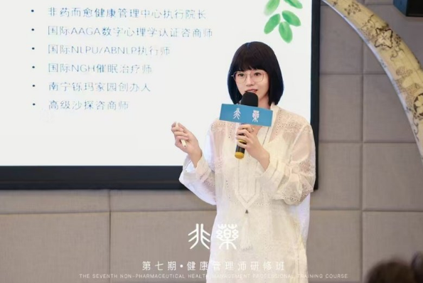 吳風(fēng)華執(zhí)行院長(zhǎng)分享了其在健康管理領(lǐng)域的豐富經(jīng)驗(yàn)和實(shí)踐案例。從個(gè)人經(jīng)歷出發(fā),展現(xiàn)了不同領(lǐng)域積累的專業(yè)技能和對(duì)健康管理的深刻理解。課程內(nèi)容不僅為學(xué)員們提供了實(shí)用的健康管理技巧,也進(jìn)一步印證了非藥理念在實(shí)際應(yīng)用中的有效性和價(jià)值。