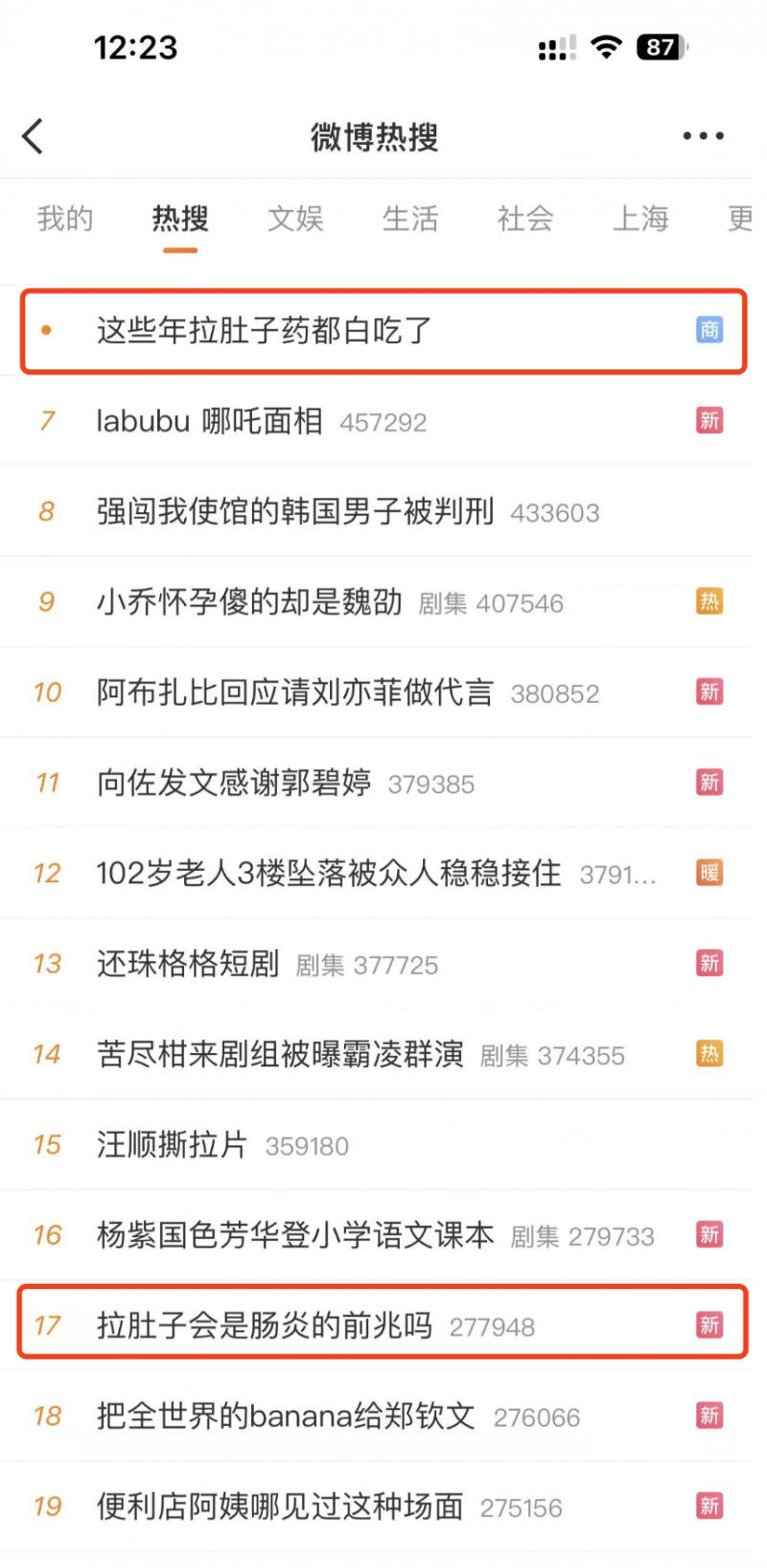 隨著日益加快的生活節(jié)奏以及食品的安全問題,大家對腸道健康問題的關(guān)注也日益增長,隨著5月29日“世界腸道健康日”的到來,人民網(wǎng)健康客戶端發(fā)起的腸道科普活動“腹瀉選對藥,止瀉消腸炎”引發(fā)全民關(guān)注,直擊“拉肚子只止瀉不消炎”的國民腸道用藥痛點,并隨著用戶發(fā)酵,#這些年拉肚子藥都白吃了 登上微博熱搜話題,掀起了一場關(guān)于腸道健康認知的深度反思。