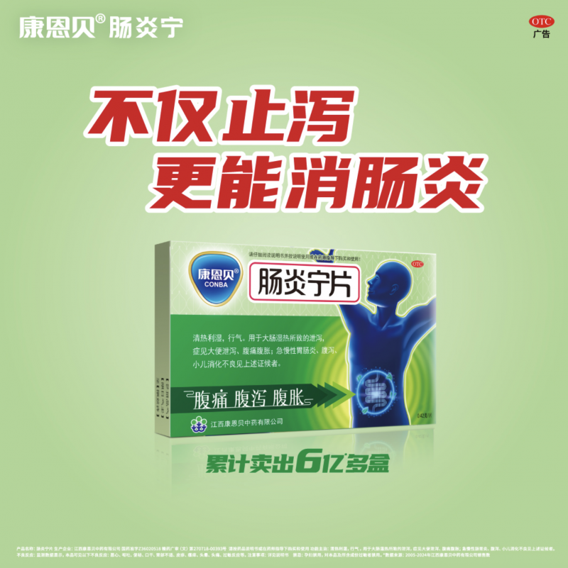這點與現(xiàn)代中藥康恩貝腸炎寧“不僅止瀉更消腸炎”的傳播理念不謀而合。產(chǎn)品以金毛耳草、樟樹根等五味中草藥復方為基礎,經(jīng)現(xiàn)代工藝提取,能夠快速止瀉的同時增強腸道免疫力,緩解炎癥等問題。