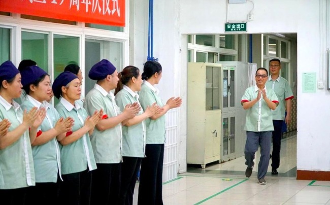 魏國(guó)平博士與參與生產(chǎn)第一批阿司匹林腸溶片的老員工合影