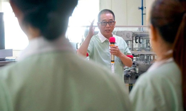 董事長(zhǎng)魏國(guó)平博士與時(shí)任生產(chǎn)車間壓片工的W助理、時(shí)任生產(chǎn)車間制粒工的W主任、時(shí)任生產(chǎn)車間壓片工J主任、時(shí)任生產(chǎn)車間鋁塑包裝工Z高級(jí)技師來(lái)到輸送帶旁,共同迎接300億片批的到來(lái)。