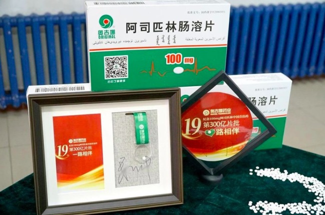 裝有100mg阿司匹林第300億片批藥片的紀(jì)念相框