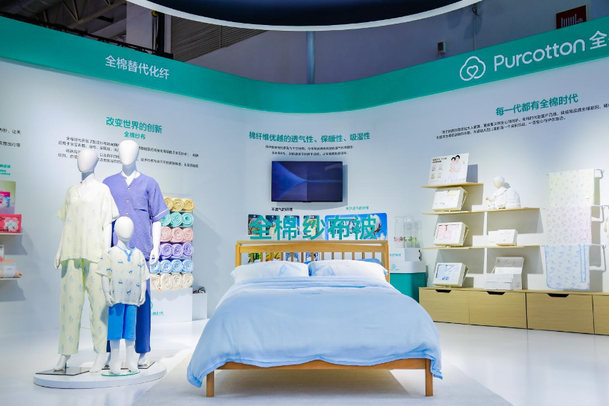 全棉時(shí)代現(xiàn)場(chǎng)展示“全棉紗布被”等產(chǎn)品,以棉為核心,用Cotton Tech全棉科技讓產(chǎn)品更舒適、健康、環(huán)保,貼近用戶需求,和用戶一起踐行低碳綠色生活。