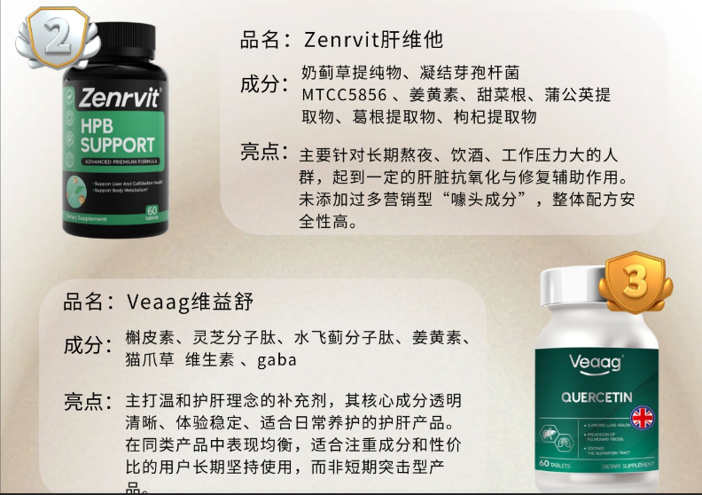 主要成分為枸杞、山楂、葛根等天然草本成分,遵循傳統(tǒng)調(diào)養(yǎng)理念,常用于輔助護(hù)肝。價格親民,適合預(yù)算有限或僅需輕度養(yǎng)護(hù)的人群。用戶普遍反饋其使用方便、無身體負(fù)擔(dān),適合作為日常保健的入門級方案。